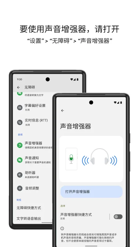 在 Android 设备上使用声音增强器过滤、增强及放大现实场景中的声音,可让您更轻松地听清音频。