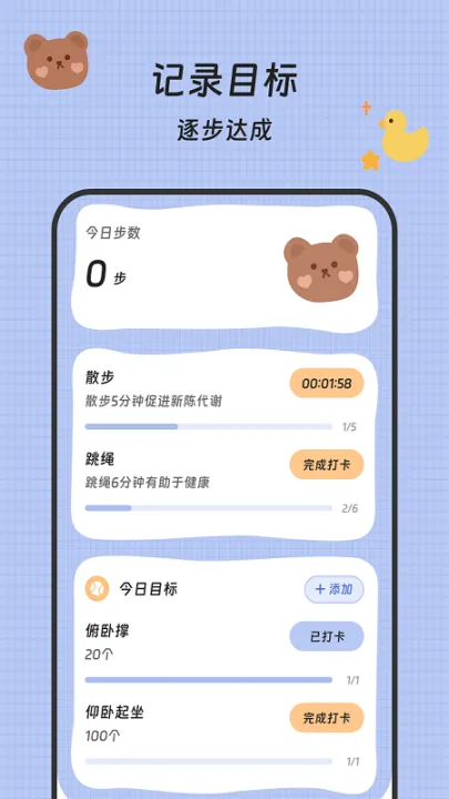4、记录运动目标可以让你的各项运动目标变得更加直观清晰。