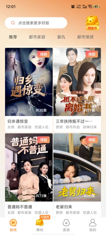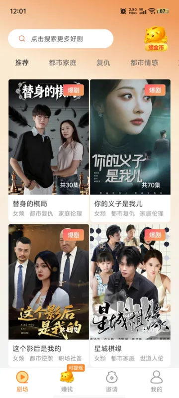 看剧赚金币:核心功能。用户在观看短剧或短视频的过程中,进度条会转化为金币奖励,观看时长越长收益越多。