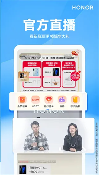 荣耀商城App为荣耀官方正品购物平台,覆盖手机、平板、电脑、智慧屏、智能穿戴及全场景配件。新品首发预约、开售提醒、直播抢购一步到位,新人享专属福利,支持以旧换新、积分兑换、邀请返利。官方直供品质无忧,7×24 小时客服、全国联保、免费退换,买荣耀设备更安心、更划算、更便捷。