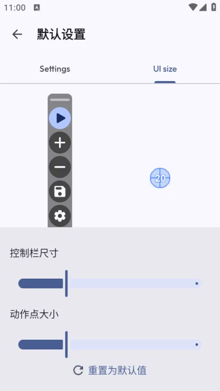 3、设置灵活性:进入设置页面可自主选择,能调整尺寸大小等内容,还可通过单击和滑动间隔、重复次数等设置进行定制。