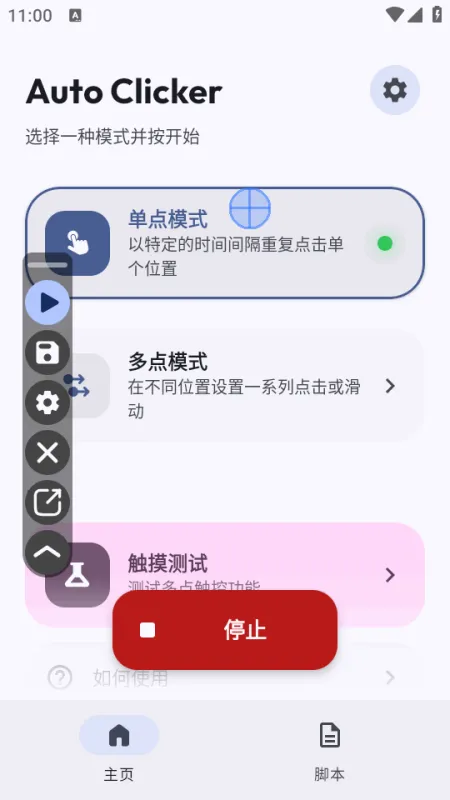 2、功能多样性:支持单点和多点触摸、单次及多次滑动、点击并按住等操作,还能导入导出脚本,无需root权限即可使用。
