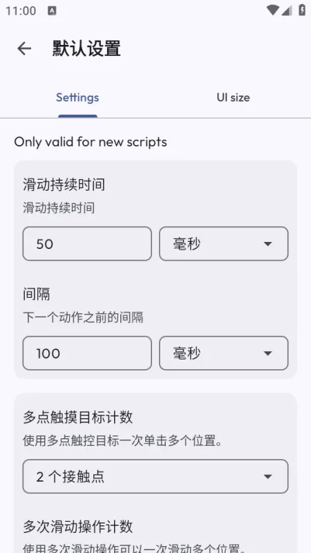 3.自定义选项丰富:可调整单击和滑动的持续时间间隔及重复次数,依特定需求定制自动化。