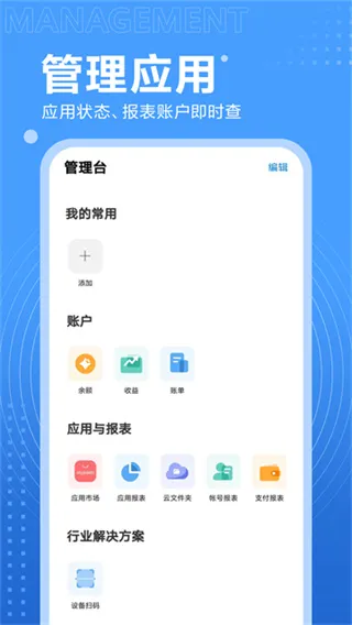 1、管理应用:上架进展、账户收益、数据报表即时查