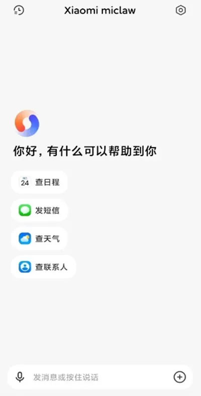 初始化设置:打开应用后,先完成基础授权(短信、联系人、米家、定位等),首次对话会确认人设,可自定义AI昵称、性格,让它更贴合你的使用习惯。