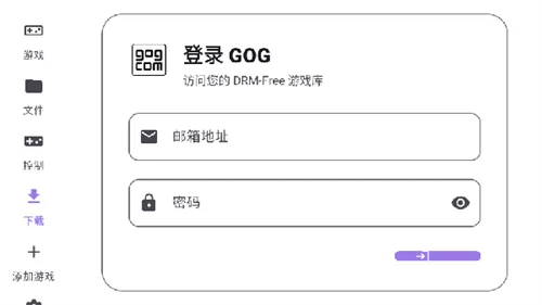 2、回到主界面,点击下载登录gog账号。