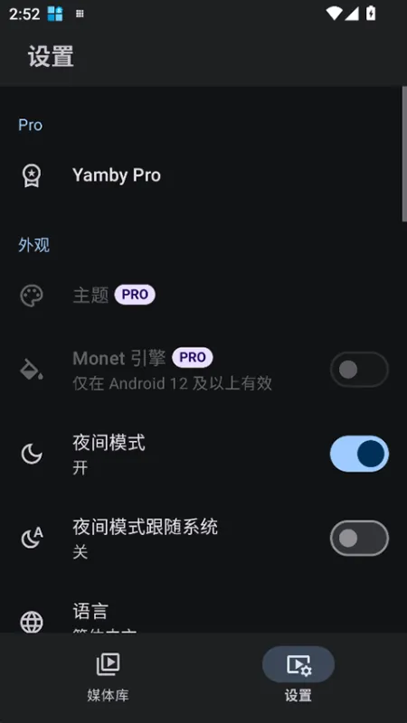 Yamby是一款专为安卓用户打造的高颜值Emby第三方客户端,深度遵循Material Design 3设计规范,支持Monet动态配色,界面极简流畅。其核心优势在于强大的播放性能:内置MPV内核,可完美渲染ASS/SSA特效字幕,支持4K硬解与画中画模式,带来沉浸式观影体验。