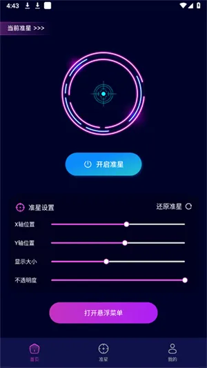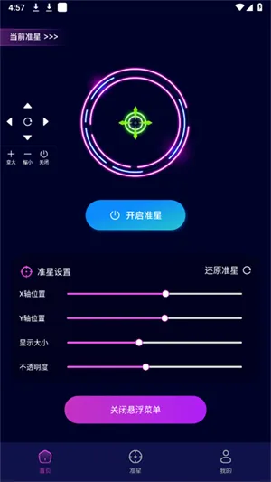 5、返回首页根据需求调整准心设置,然后点击开启准心即可。
