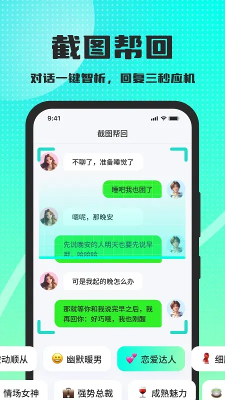 应对日常尬聊、结束语接话等场景,提供元气满满、幽默风趣等风格的回复,让普通聊天更有乐趣,轻松延续话题。