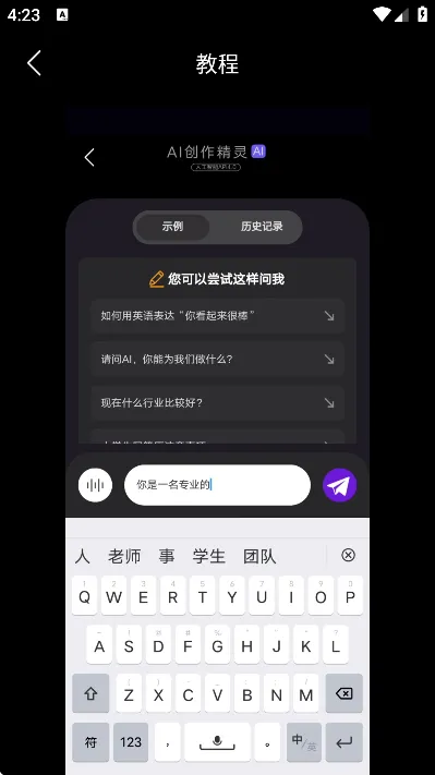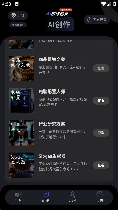 2、可以让机器人帮助大家创作各种AI内容,输入主题轻松进行生成。