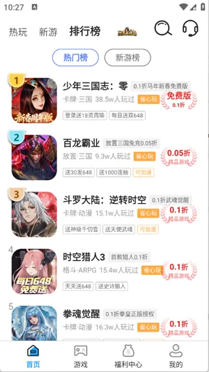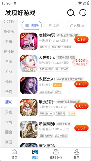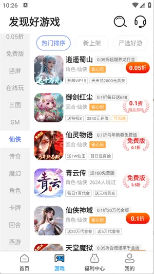 海量免费游戏库: 收录三国、仙侠、魔幻等多种类型游戏,资源丰富,全部免费畅玩。