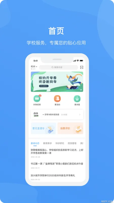 一款专业的校园生活学习一体化平台,专为浙大城市学院的师生设计的,汇集了多种功能可以使用,包含了校园活动和资讯的了解,能够在线缴纳各种费用,包含了学费和生活费用,还有失物招领功能,让你的校园生活智能化