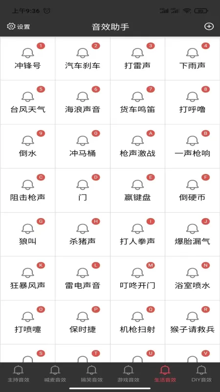 1、在本站内下载安装并打开软件后,熟悉简洁的界面布局,了解各类音效的分类位置及功能按钮。