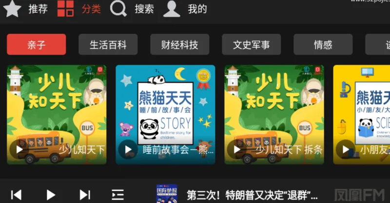 “凤凰FM”致力于提供时下最优质的音频内容,涵盖书店畅销读物的有声化版本。应用提供多种分类节目,涵盖畅销读物、亲子、新闻、生活百科等多个领域。它拥有丰富的节目分类,满足各类人群的聆听需求,如“亲子”、“新闻”、“生活百科”、“财经科技”以及“凤凰独家”等特色栏目。