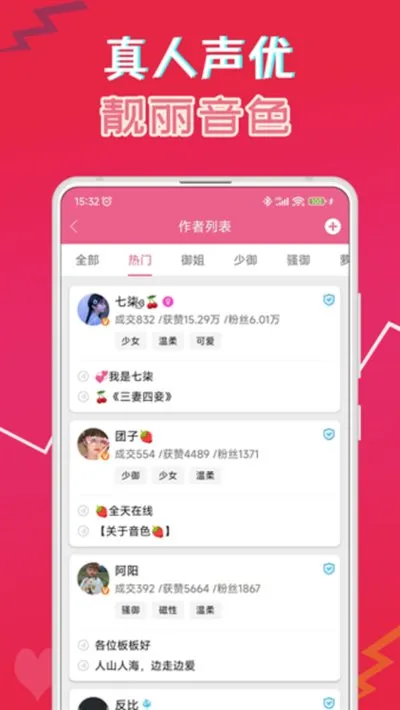 数千名声音好听的陪玩伙伴在线等你,不管你是想找专业的技术指导,还是只想找人娱乐聊天,这里都能找到合适的人选。