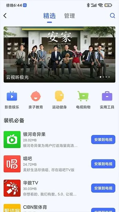 这里为你精心挑选了海量的电视应用,覆盖了影音娱乐、家庭健身、亲子教育等多个方面,让你能够发掘电视的更多潜力,享受更多精彩。