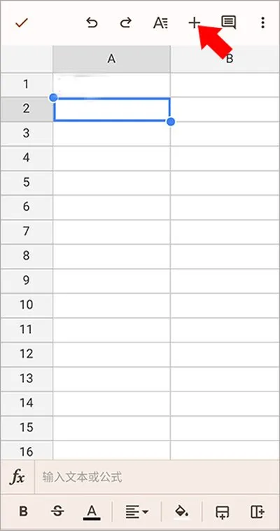 1、首先在表格中选中你想要放置图片的目标单元格,然后点击界面右上角的“+”号图标。