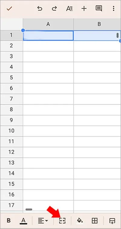 3、完成选择后,目光移到屏幕下方的工具栏,找到并点击那个合并单元格的专属图标,选中的单元格就会立刻合为一体。