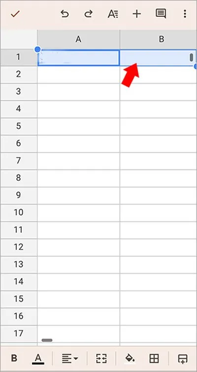 1、首先,在打开的表格里,用手指轻点一下你打算作为合并起点的那个单元格。