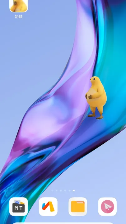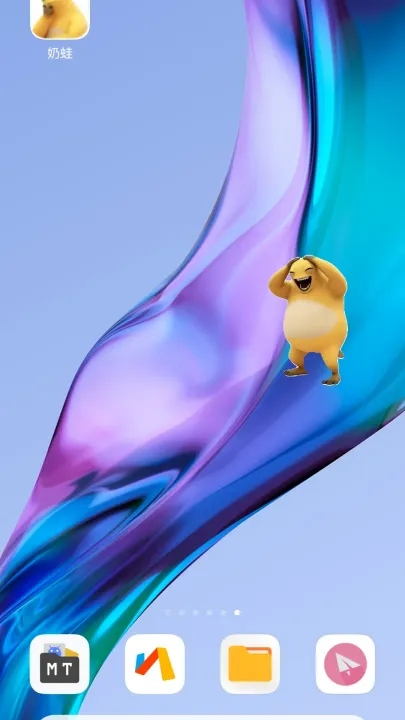 3、桌面陪伴展示:将奶蛙桌宠保持运行状态,让其常驻手机桌面,作为动态的桌面小宠物,点缀单调的手机界面。