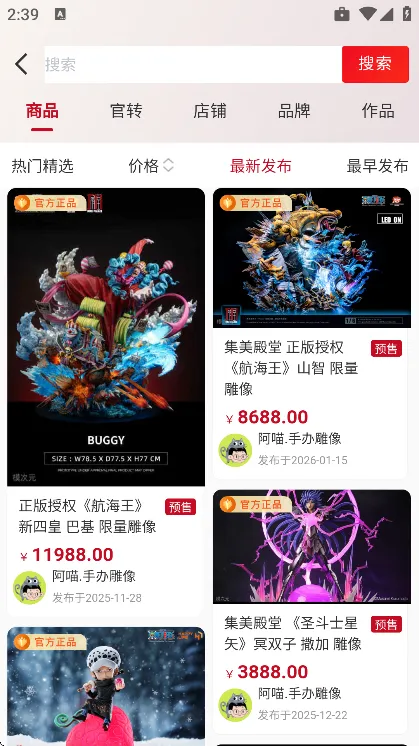 2、新旧藏品全覆盖:支持全新手办预定、现货购买,也开放正规二手交易渠道,满足入门玩家到资深藏家的不同需求。