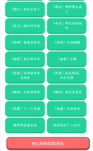 游戏角色语音库: 收录丰富角色台词与技能音效,点击即可播放。