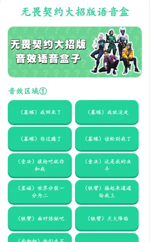 无畏契约大招版语音盒,沉浸式语音互动工具。收录全角色原版、敌我视角、击杀庆祝等全套大招语音。游戏原声、无 AI 合成。悬浮窗快捷播放、多模式控制、收藏分类。5MB 轻量、离线可用、完全免费。开黑实时互动、社交整活、回忆名场面。紧跟版本更新,让每局都有专属 BGM,成为战场气氛组天花板。