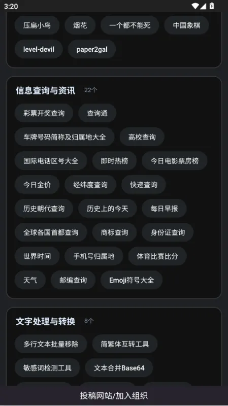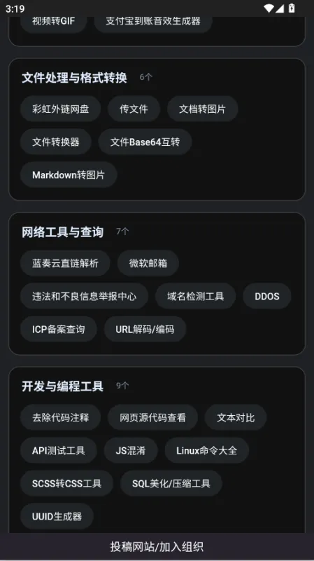 网页工具聚合工具箱 App,全网优质资源一站式聚合!内置虫部落、影视仓、蓝奏云等百款实用站点,覆盖搜索查询、免费影视、无损音乐、文档处理、代码开发等全场景。一键打开、秒速加载,告别多 App 切换与广告困扰。界面简洁、分类明确、持续更新,工作学习高效提速,生活娱乐一站满足,真正的掌上资源神器。