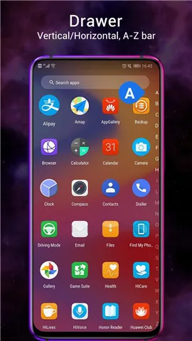 3、应用程序抽屉默认为垂直模式,也支持水平模式