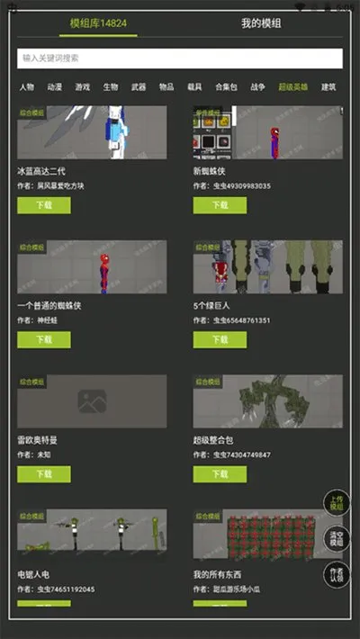 3、进来之后就能看到模组市场了,分门别类给你列好了。人物、动漫、游戏、生物、武器、物品、载具、合集包……花里胡哨的一大堆,自己慢慢挑。