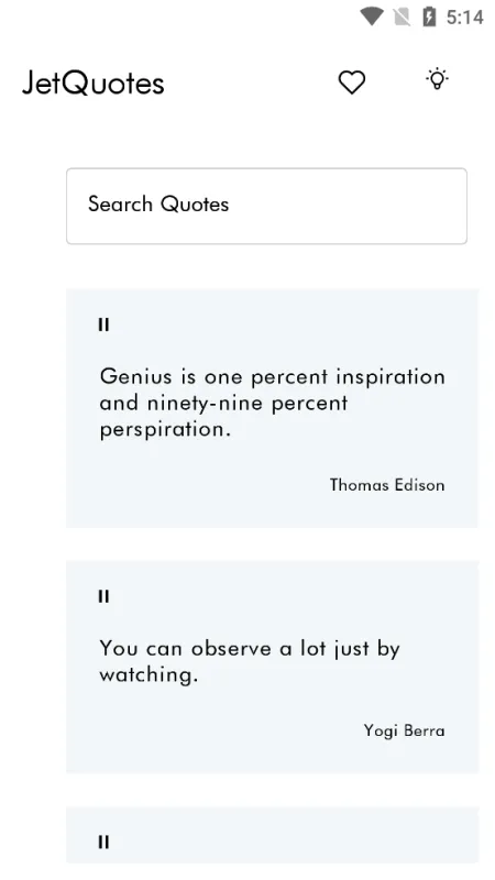 JetQuotes ,专为语录爱好者与 Android 开发者设计!采用声明式UI 与MVVM架构,响应式数据流精准刷新,DataStore 安全存储。支持收藏、复制、分享,深浅模式自动适配,页面跳转流畅无卡顿。既可每日获取励志金句治愈日常,又能直观学习现代 Android 开发范式,工具价值与学习参考双重满足,小巧强大即装即用。