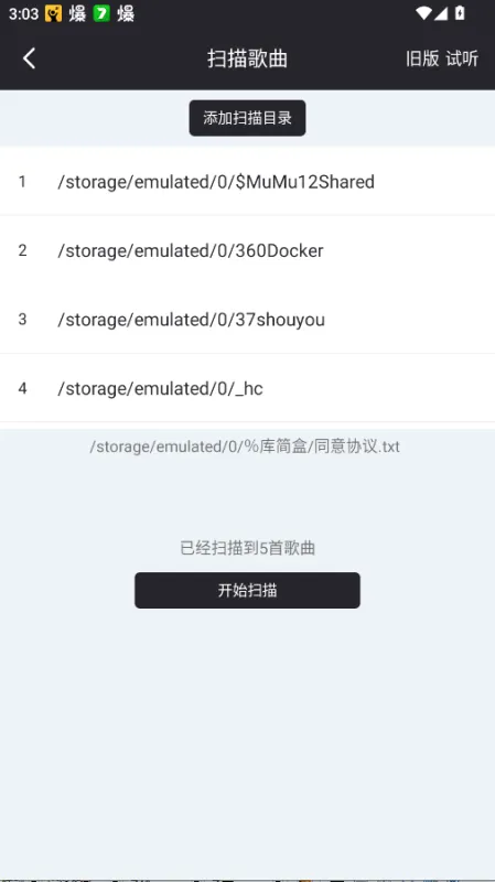 4.确认路径后点击“开始扫描”,软件将自动检索本地音频文件。