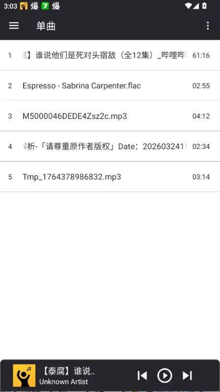 5.扫描完成后,即可在播放列表中选择歌曲进行收听。