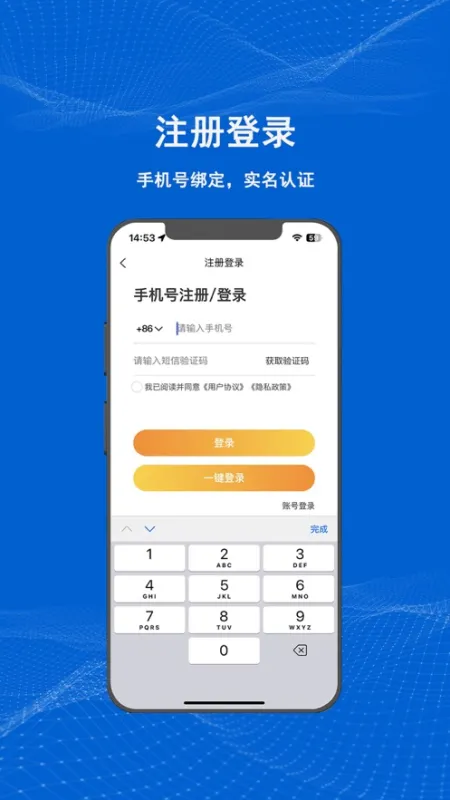 2、点击过后在注册登录的页面中输入上手机号和验证码后点击【登录】即可;