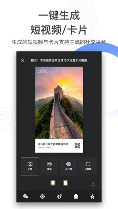 在线上传、制作,傻瓜化操作,快速分享至微信/QQ/抖音/快手/皮皮虾等社交短视频平台,快捷骚操作,不需要技术含量!