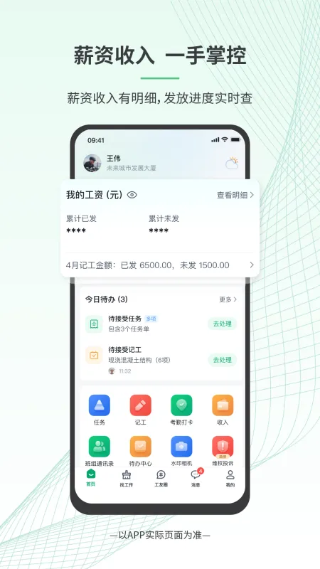 安心筑app是由一智科技(成都)有限为建筑⼯⼈量身打造的专业APP,致力于推动建筑行业持续健康发展,以科技赋能产业未来,让每一位产业工人薪资有保障,随时有活干。该软件提供了线上班组管理、⼯作信息处理、线上施⼯任务分发、⾃动记⼯⼯具等实⽤功能,每一个共嗯那个都是非常的实用。比如线上班组管理,能够让用户动态供需匹配,一键找工作,还有⾃动记⼯⼯具,快速获取到员工的考勤状态,了解工作的情况,打破了原始的线上勘察管理方式,随时了解信息。这些功能可以说是非常的方便了,那么工资有保障吗?