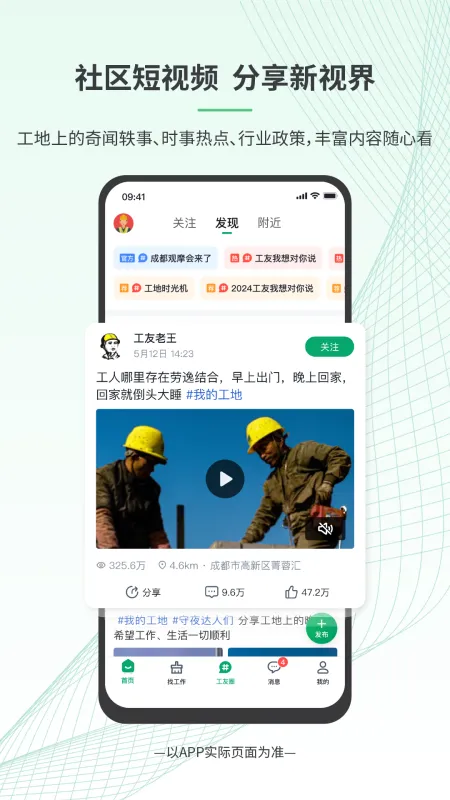 -【找工作】版块全新升级,新增工人工种认证及岗位匹配的派接单模式,快速匹配对应工种的“认证”岗位,找“真”项目,挣靠谱钱