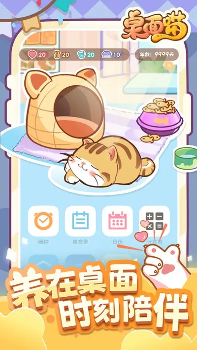 1、桌面喵这套玩法算是个新思路,让你能在手机桌面上直接养个电子宠物。