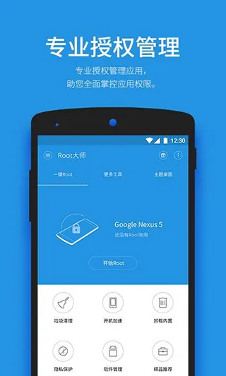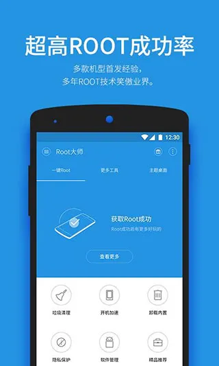 一键 ROOT 大师,集成多引擎智能匹配,云技术提升 ROOT 成功率。操作极简,小白也能轻松掌控手机内核。ROOT 后自由卸载顽固预装,深度清理垃圾;智能管控后台自启,告别卡顿偷电;精准授权管理,守护隐私安全。支持反 ROOT 恢复,安全无忧。释放手机潜能,告别束缚,定制专属流畅系统。