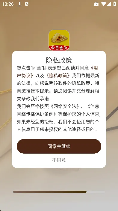 1、首先打开应用点击“同意并继续”按钮来进入app中。