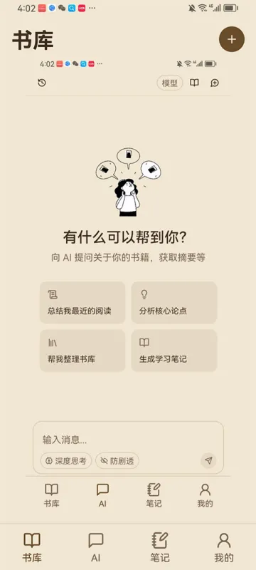 把每本书变成可对话的知识伙伴——随时提问、一键生成精炼摘要、深度挖掘主题脉络、即时翻译生涩段落。原生支持 OpenAI、Claude、Gemini、Ollama 与 DeepSeek,亦兼容任意 OpenAI 协议的私有模型,真正让AI为你读懂书、讲清理、理透思。