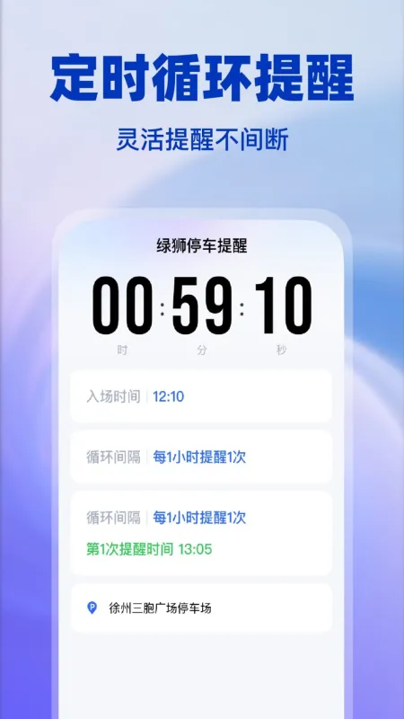 循环提醒模式:每30分钟或1小时自动提醒,适合不确定结束时间的场景(如长途充电、临时停车)。