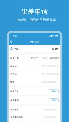 2、线上快速预订,提供出差申请功能,大大简化审批流程。