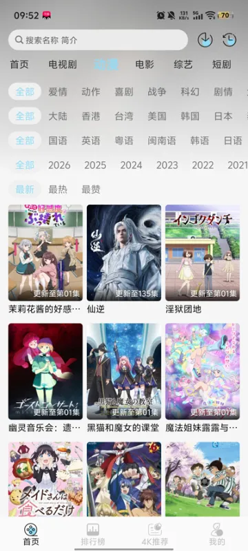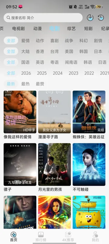 搜索与筛选:通过顶部的搜索框输入片名、演员或导演快速查找;或利用分类标签(如电影、动漫、4K专区)筛选你感兴趣的内容。