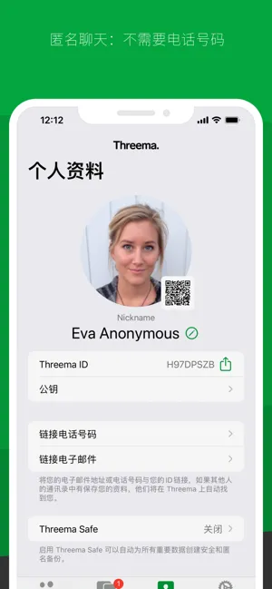 这样的话,如果你要和别人交流,你必须分享你的 Threema ID,而不是你的手机号码。
