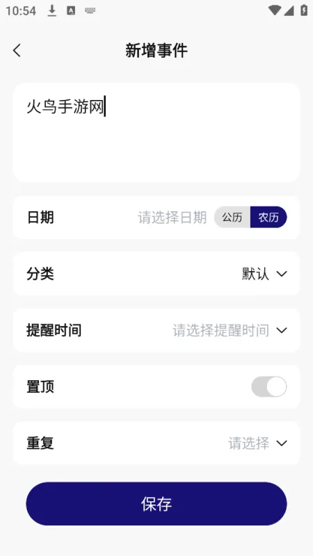 3、农历设置:添加纪念日记录或倒计时提醒,可以选择农历日期,支持从 1900 年至 2100 年的农历日期;