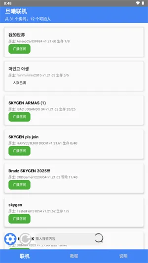 旦曦联机专为 MC 基岩版玩家打造的免费联机辅助工具,完美适配全平台基岩版设备,支持手机、平板、电脑跨端互通联机。无需复杂网络配置,一键开房组队,局域网与外网均可连接,优化传输协议降低延迟、稳定防掉线。自带完整新手教程、好友管理、房间广播与存档设置功能,智能匹配同好玩家,界面简洁无广告,轻松解决异地开黑难题,随心与好友建造探索我的世界。