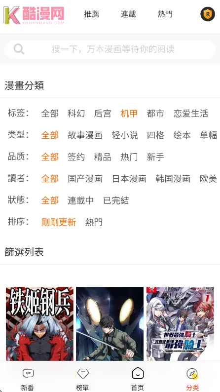 3、分类将漫画进行了详细的归类。