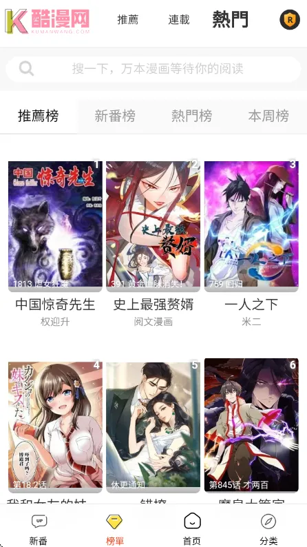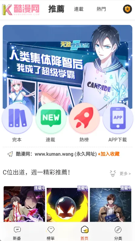 2、首页为用户推荐了热门的漫画资源类型。