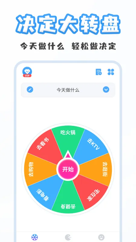 1、在大转盘页面,通过转动转盘决定今天做什么。